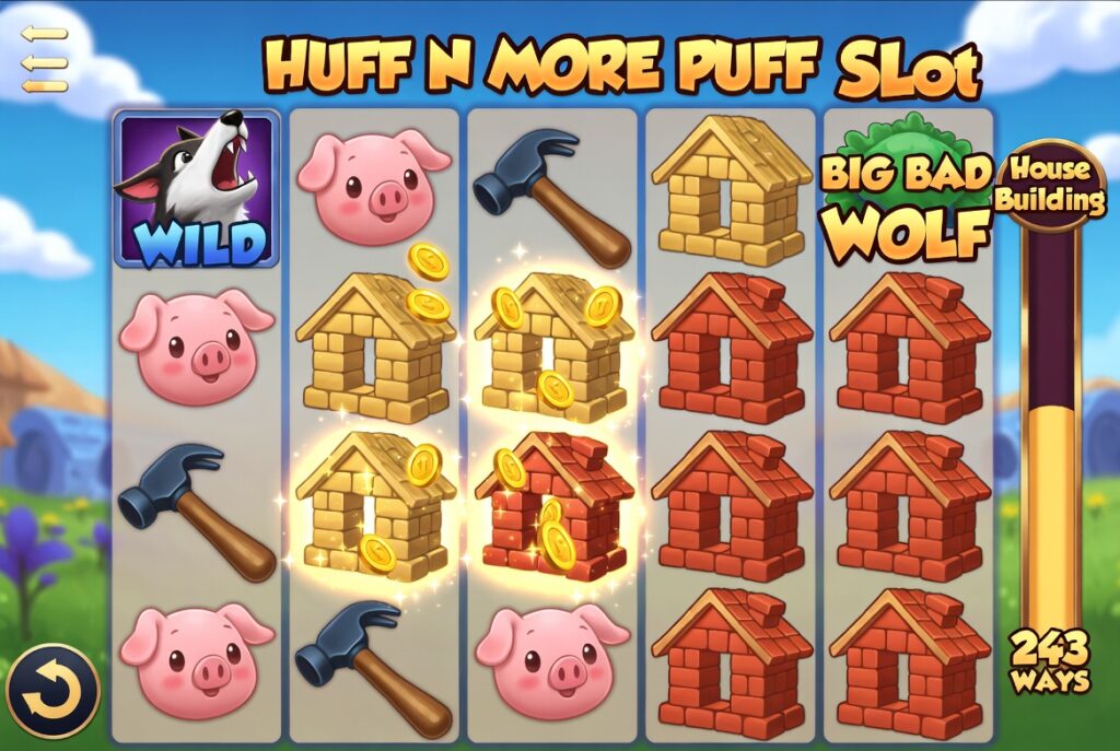 Stellen Sie sich vor, Sie treten in eine fröhliche Märchenwelt, in der drei kluge kleine Schweine Häuser bauen und der große böse Wolf gleich überlistet wird – während Sie große Gewinne verfolgen. Genau das ist das huff n mehr Puff Slot Fühlt sich an wie. Diese Light & Wonder-Kreation vermischt Nostalgie mit frischem, aufregendem Gameplay, das Sie von der ersten Dreh an zum Lächeln bringt.